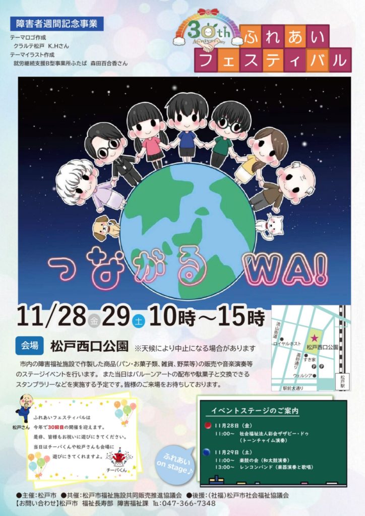障害者の福祉に対する市民の皆様の理解を促進し、障害者の社会参加への意欲向上を図ることを目的として、「ふれあいフェスティバル」が11月28日(金)、29日(土)の2日間にわたり開催されました。