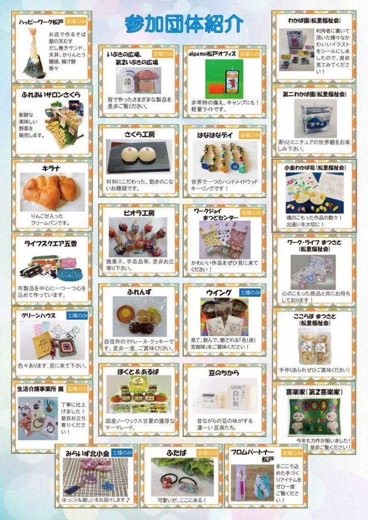 今回のイベントは、職員や利用者にとって大変良い刺激となりました。他の施設の活動内容を直接目にし、交流する機会を得られたことで、利用者の方々も、多くの人との交流を通じて社会参加への自信と喜びを感じることができたようです。この経験を活かし、今後の活動の質の向上に繋げて行きます!